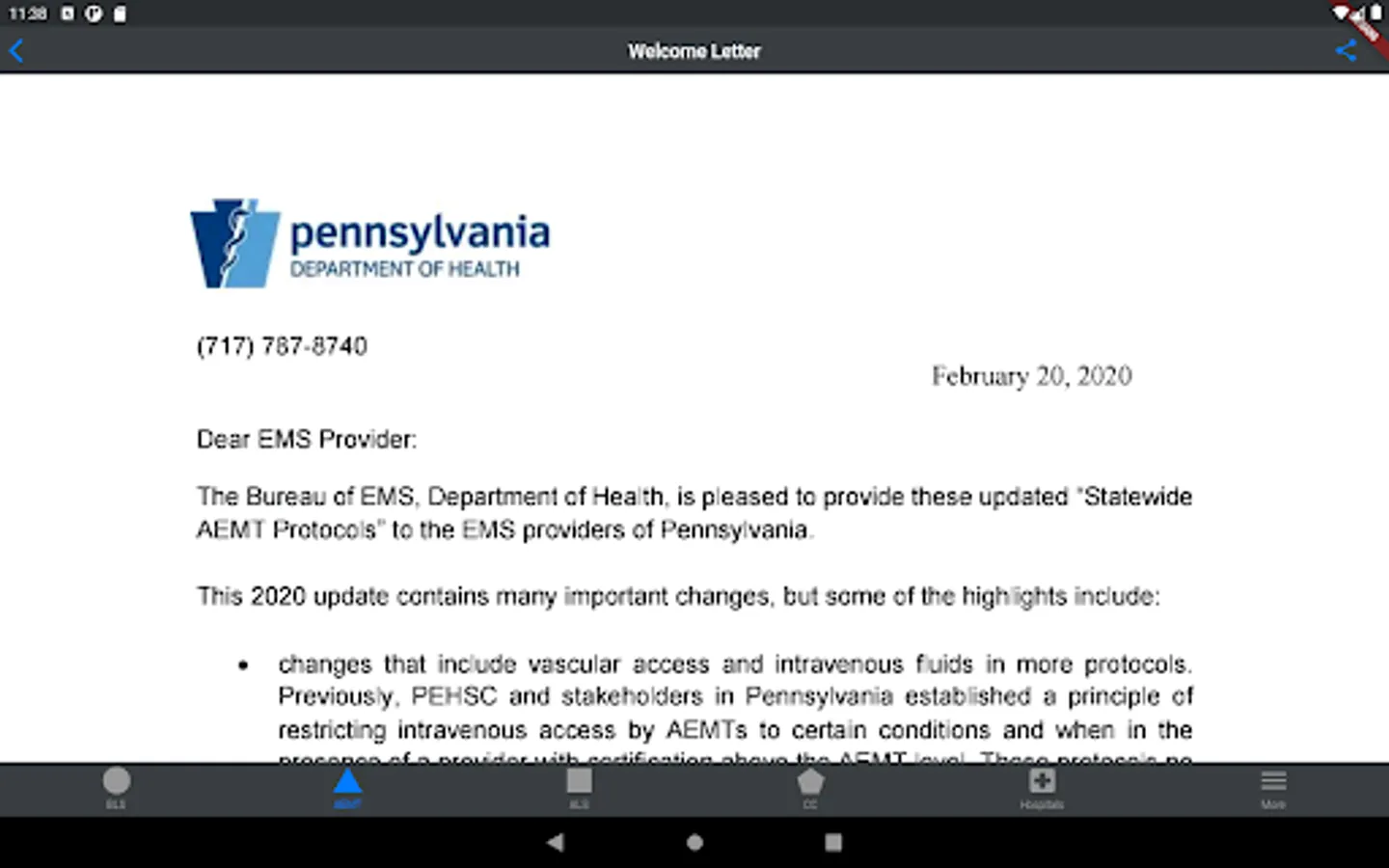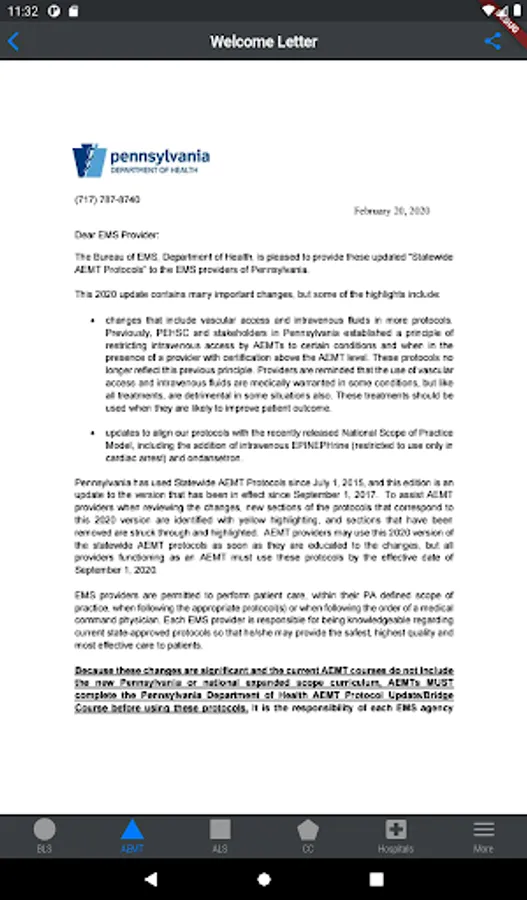 If you are an Emergency Medical Responder, EMT, AEMT, Paramedic, Critical Care Paramedic, Nurse, student, or other medical professional in Pennsylvania looking for an app with the latest protocols and hospital data, iHarig's protocol app is the app for you! This application hosts the fastest updates, works on all platforms, and features searching, sharing, hospital filtering by capability, and important state/regional information beyond just displaying protocols.