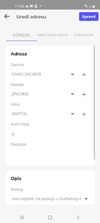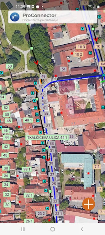 The mobile application is intended for recording connections, i.e. supplementing water and sewerage layers connected to the TIS-PIS module. It enables the connection of unconnected users to the space, and by simply searching for the nearest connected users from the current location, and connecting their services. The application has the option of connecting to a GPS antenna, which automatically transfers the coordinates of the recorded point to the spatial database.