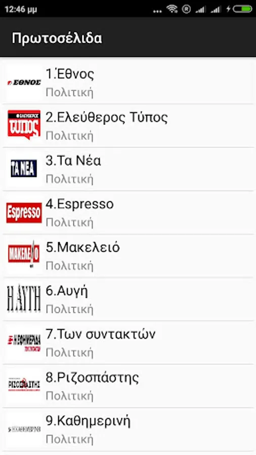 Here you will find political newspapers, sports newspapers, financial newspapers, newspapers of Northern Greece, newspapers of Thessaly, newspapers of Crete and newspapers of Rest of Greece.