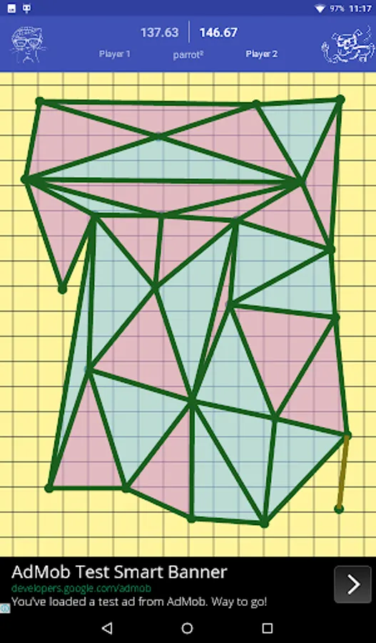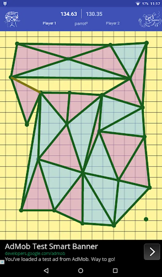 If the triangle formed as a result of move, that does not contain other points - player gets points. The game ends as soon as all the triangles are constructed. The winner is the player who has the most points.