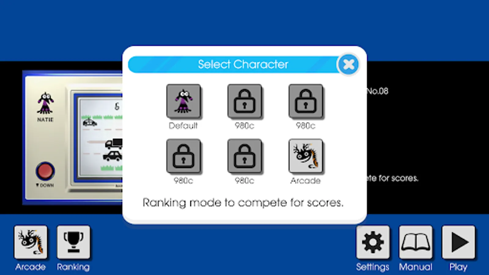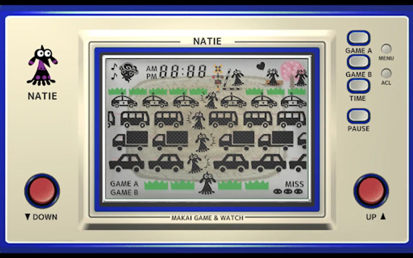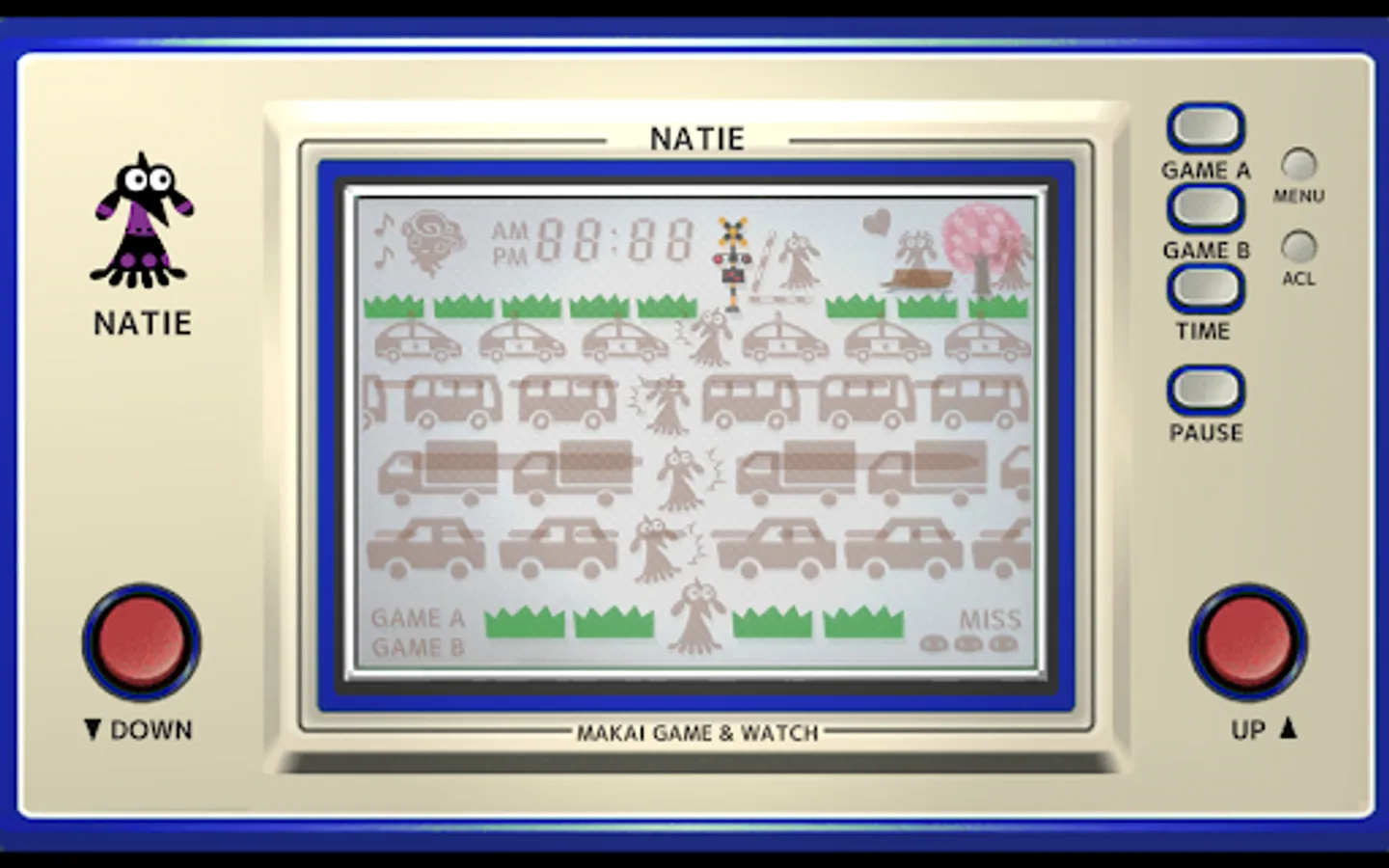 It is an action game that moves Natie to the other side of the crossing bar by avoiding cars.