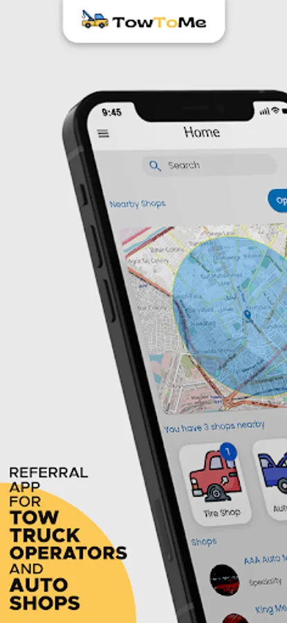 TowToMe is a referral app that connects Tow Operators and Auto Shops together.