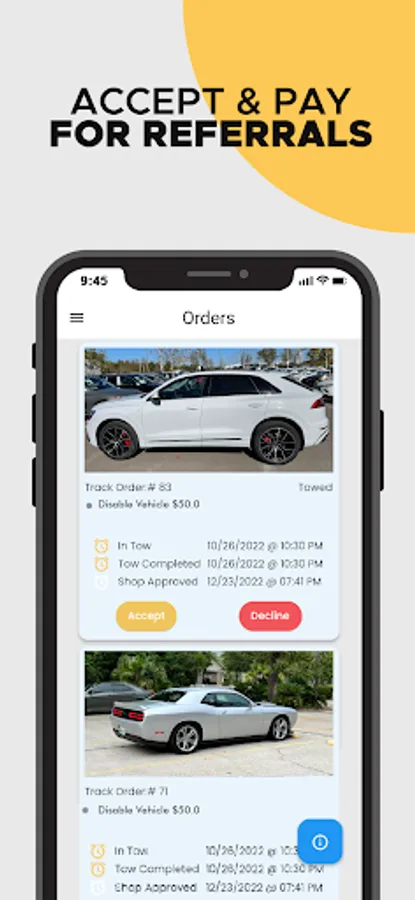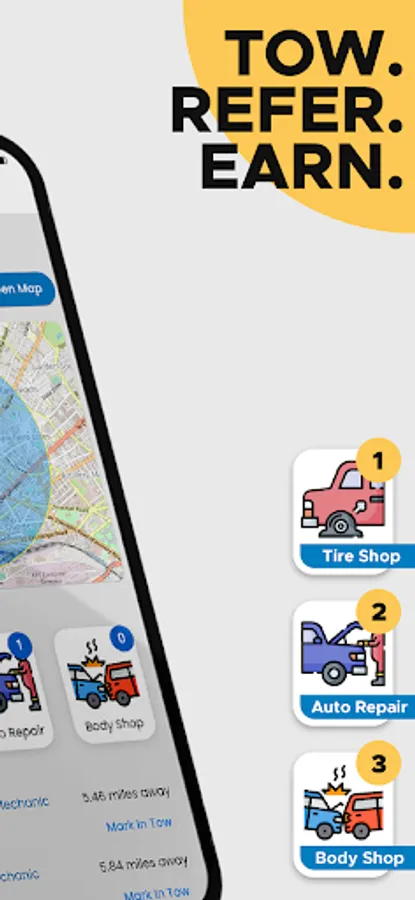 For Tow Operators, we have developed a mobile app that allows Tow Operators to refer disabled vehicles to shops that show up on our locator. When you refer new customers to these shops, we will pay you a commission. Shop owners need more customers and profitable repair work to stay in business. Shops are willing to pay to have these types of vehicles towed to them.