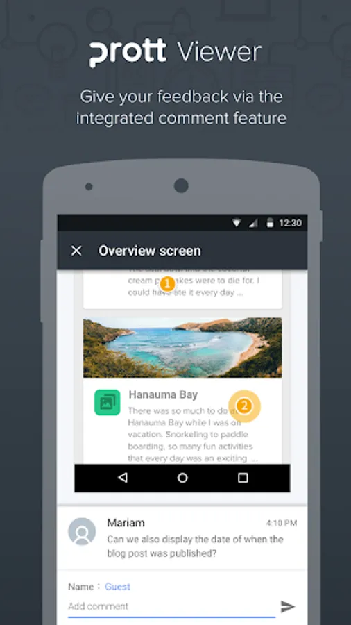 If the comment feature has been enabled on the prototype, you’ll be able to share your thoughts from within the app. Simply tap the comment icon and start commenting away.