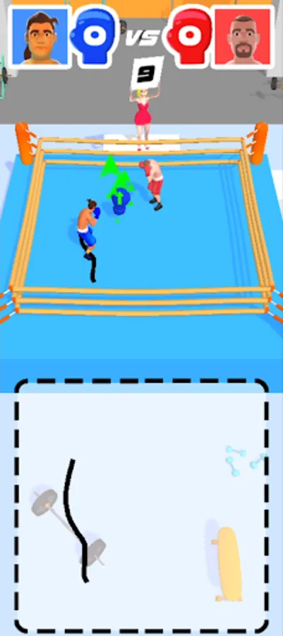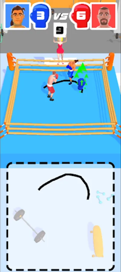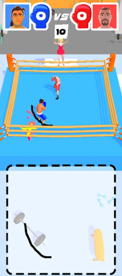 Draw your way on the ring and collect boxing gloves to power up. Beat your opponent o victory!