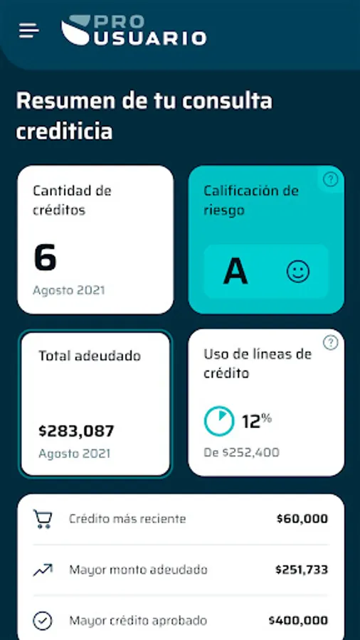 Note: this report is not a replacement for the one issued by the Credit Information Societies (credit bureaus), it does not include a credit score and does not guarantee that you will benefit from a credit from the information presented.