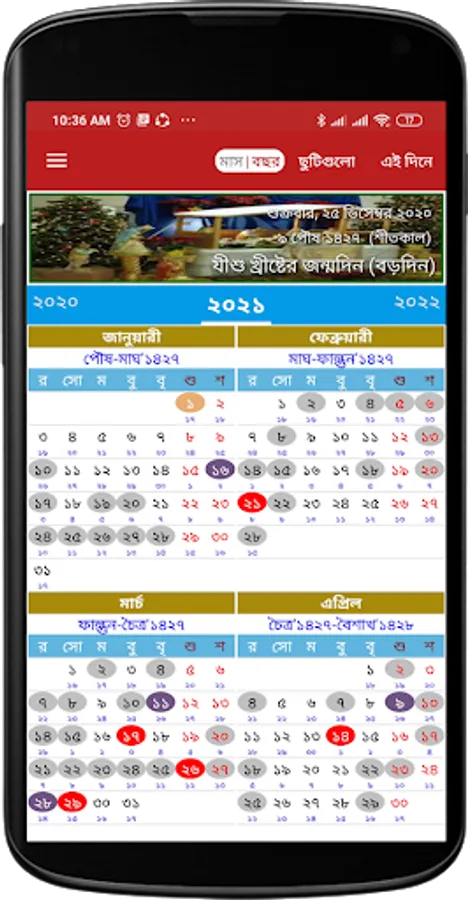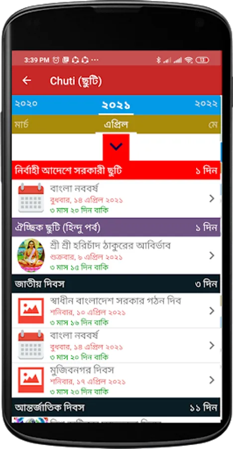 And you will find out why the holiday was declared a holiday, a brief description of the context in which the holiday is held. Also using the app you can convert any English date from Bengali date to English. As a result, if you know the English dates of the past years for your special needs, you can easily find out the Bengali dates.