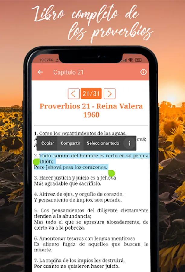 You will find hundreds of biblical verses since we bring you the complete book of Proverbs of the Reina Valera Bible 1960 so that you can meditate, reflect with wise proverbs.