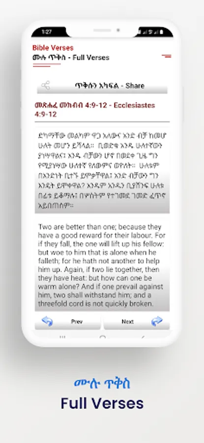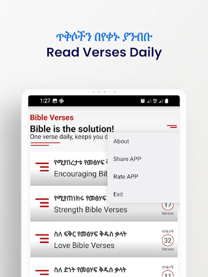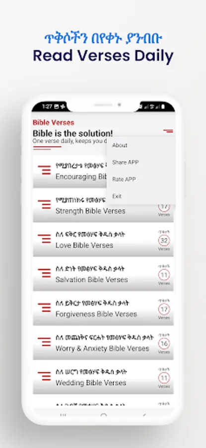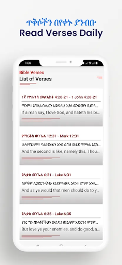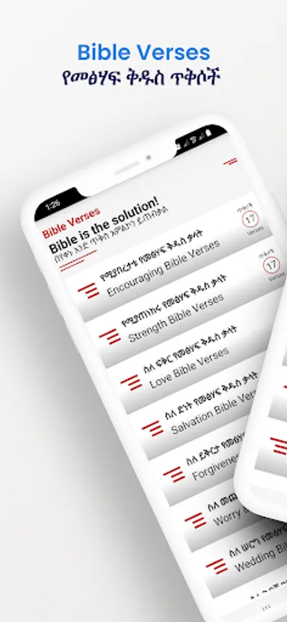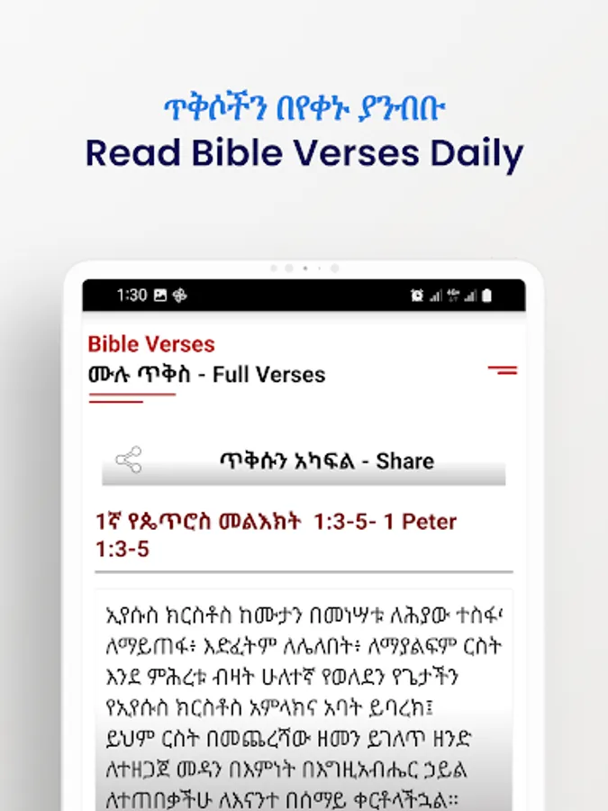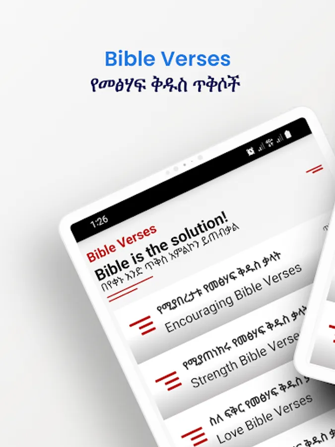 In this App there are over 500 Verses, Quotes, Proverbs … which are from different parts of the Bible, this will help us to read only parts of Bible we want to read about. And this App is in both in Amharic (Ethiopian Language) and in English.
