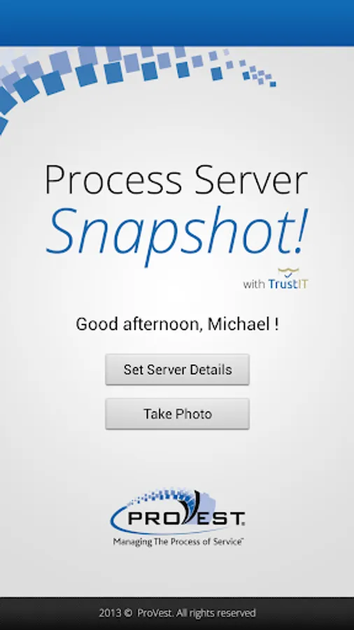 Process Server Snapshot! is a free application provided by ProVest LLC, an industry leader in Service of Process. This application provides the Service of Process industry a simple means of capturing service location, date, and time meeting current compliance regulations. Process Server Snapshot! delivers the following features:
