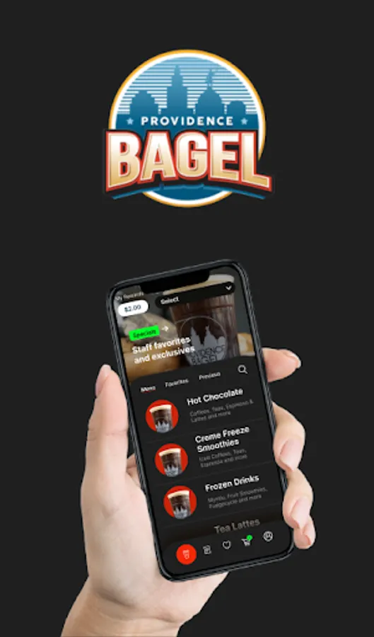 The Providence Bagel app allows customers to easily place an order for pickup at multiple locations. The app also has great rewards and is optimized for seamlessly reordering your favorite food and beverages.