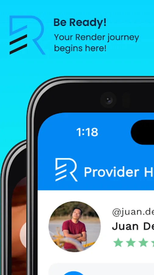 This app will be your everyday partner for managing your Render services, bookings and anything related to your provider account.