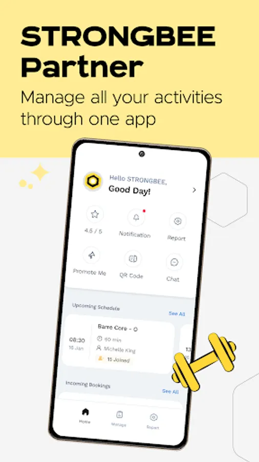 The STRONGBEE provider app allows trainers, coaches, and other service providers to manage all their activities with ease. With STRONGBEE, you will be able to expand your business, reach more people, and inspire growth!