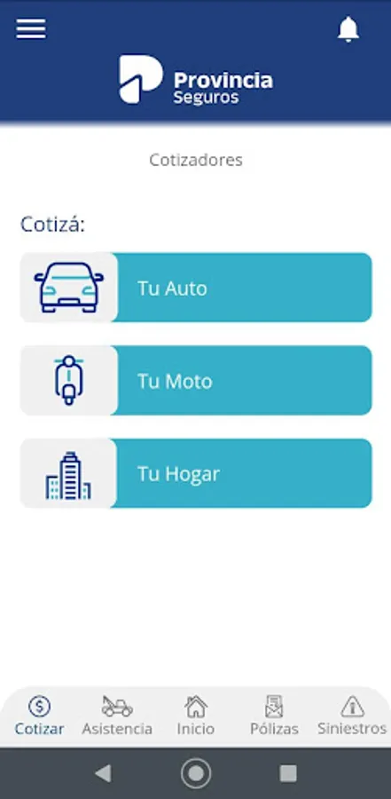 The mobile application of Provincia Seguros allows you to: