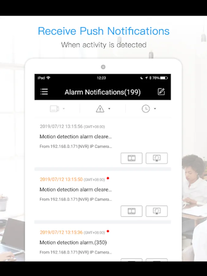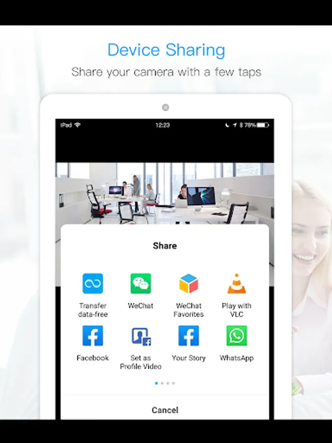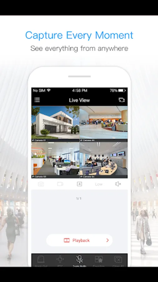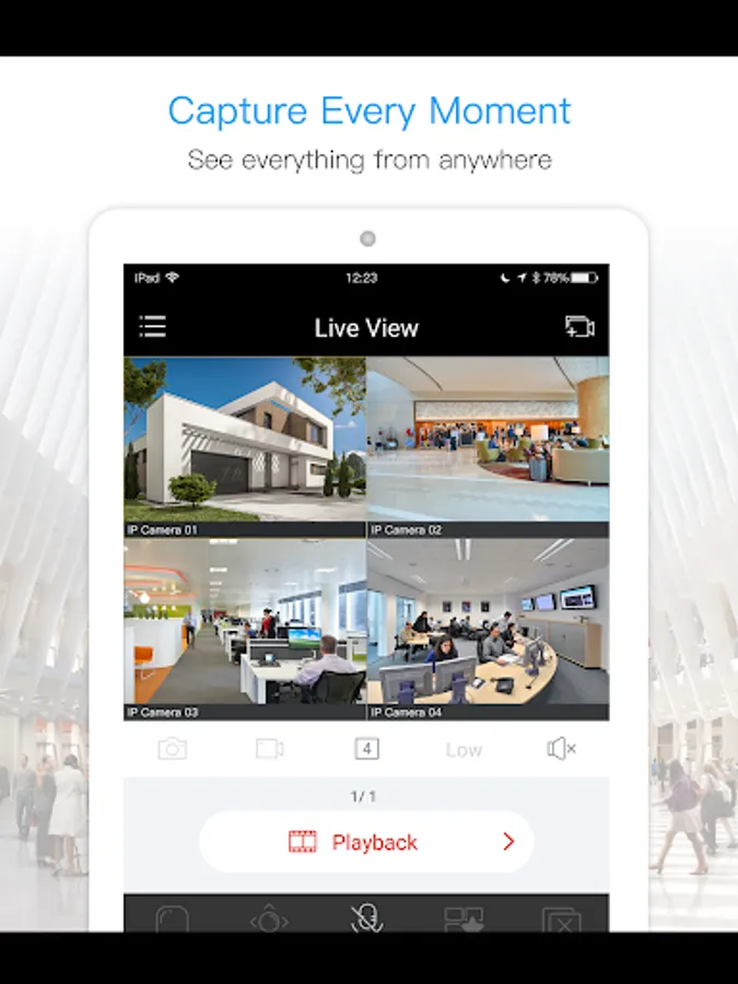 With this app you can access our surveillance products through network and view live or recorded video, receive alarms and manage cloud devices using your mobile phone.