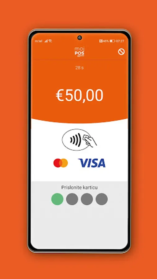 MojPOS omogućava jednostavnu i brzu platnu transakciju i beskontaktno plaćanje kroz upotrebu mobilnog telefona.
