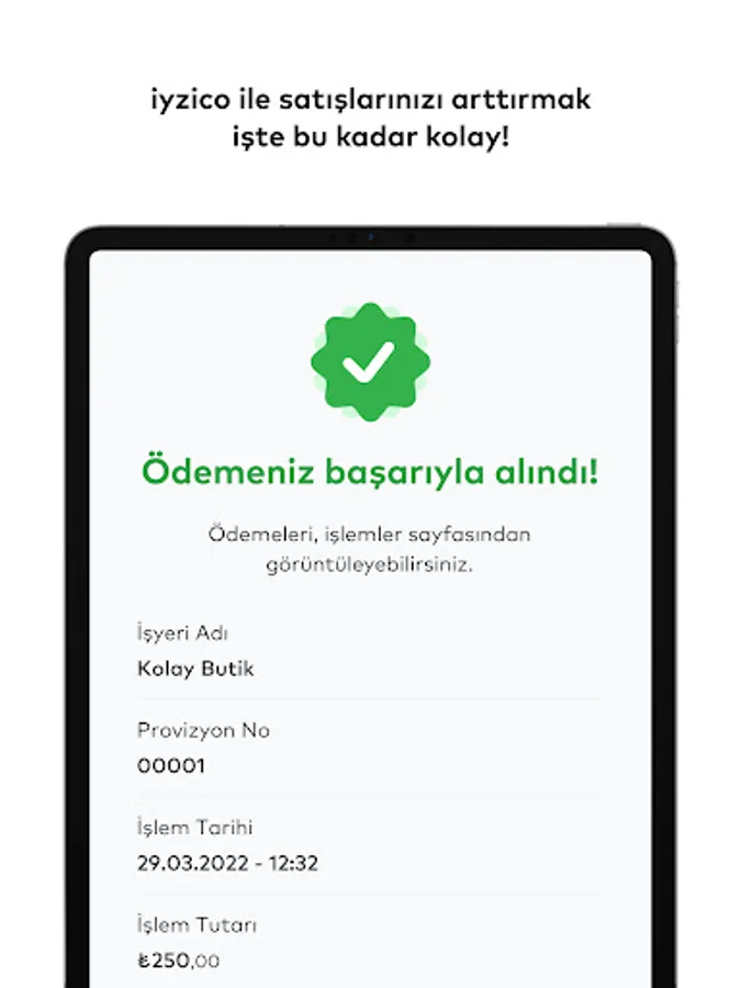 iyzico Cep POS is a plugin that only runs with iyzico business app. You can easily activate the feature from the Cep POS menu in iyzico business app, and turn your smartphone or tablet into a POS device and start accepting contactless payments wherever you want through this plugin.