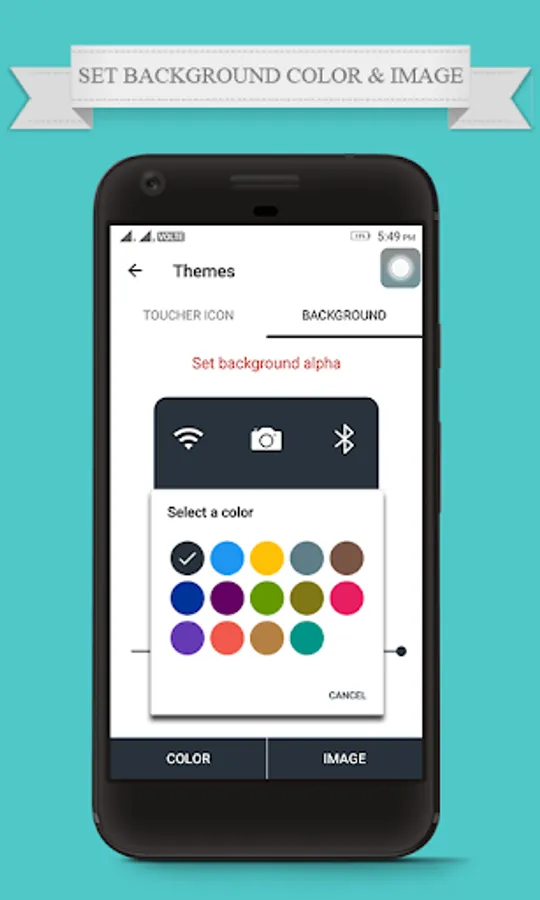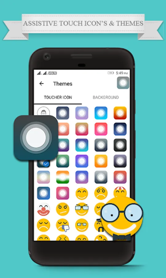 Themes : Customize Toucher icon and Background using Color and Image as you want.
