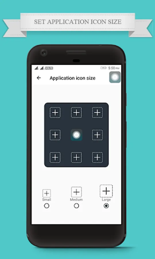 App icon Size : User can change App icon size in Small, Medium and Large.