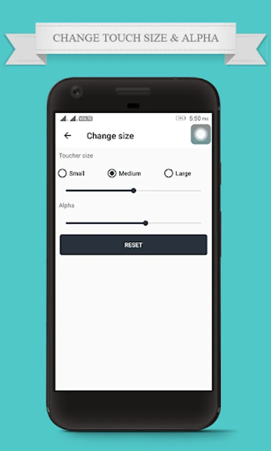 Toucher Size : You can change toucher size and Alpha or transparency.