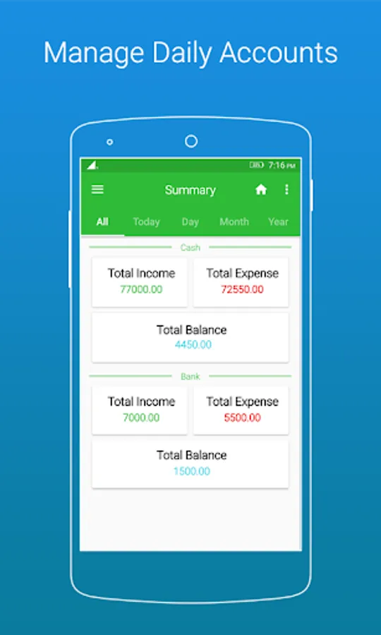 In this app user keep and manage his/her daily account transaction with safe n secure.