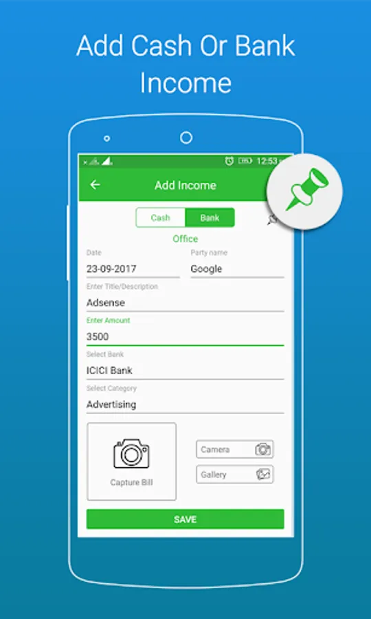 >Select your incom type like "Cash" or "Bank".