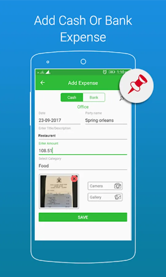 >Select your Expence type like "Cash" or "Bank".