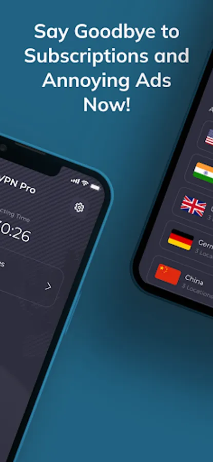 Say goodbye to ads and subscriptions! Get The Pro VPN and enjoy 100+ premium and fast servers for a one-time payment.