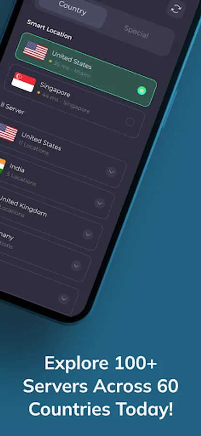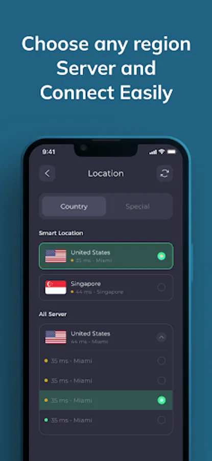 We provide High-Speed VPN servers from all over the world! The Provided servers are from different countries. Now Choose the fastest VPN server and connect to unblock all the apps and sites over the internet.