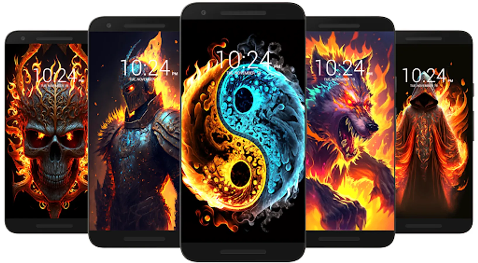 Here you will find awesome wallpapers of the following categories for free for your phone and tablet: Fire Tiger, Wolf, Lion wallpapers, all HD photos. Search flame and fire backgrounds as you like in App to find related images.