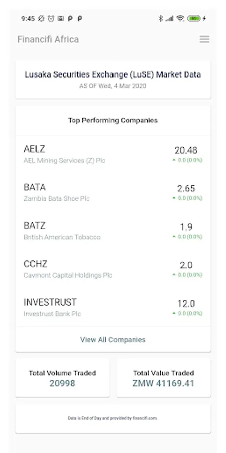 Financifi Africa aims to provide timely Financial Market Data for all Security Exchanges in Africa with updates on a daily basis. Customers can view both end-of-day (EoD) market data as well as historical market data.