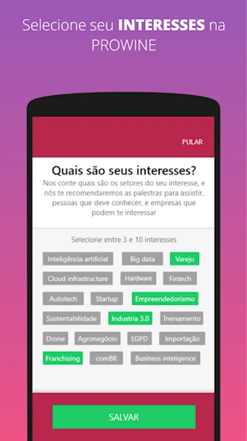 Application of PROWINE SP, the main professional fair for wines and spirits in Latin America. Exclusive to industry professionals.