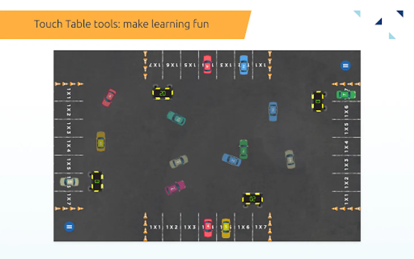 Establish interaction between devices in the classroom and the Touchscreen. For instance, let students take each other on in competitive games such as the math race.