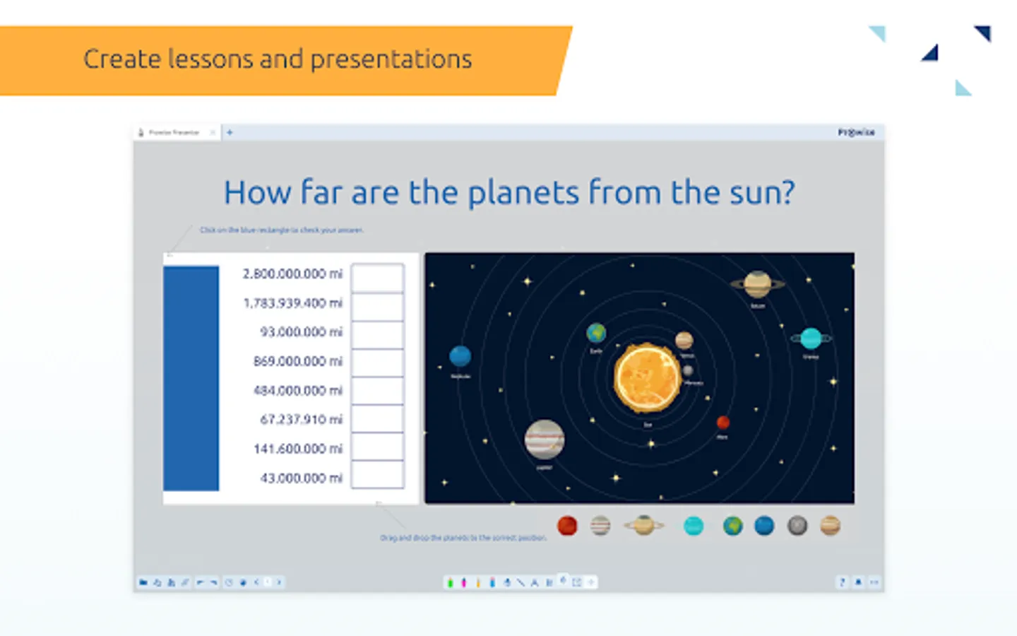 Create endless possibilities. The free education software Presenter is made for teachers and pupils. The media library is packed with content to create lessons, essays, presentations and quizzes. The media library contains (touch table) tools, images, 3D models, sounds, backgrounds, videos and building blocks to make your Presenter file interactive.