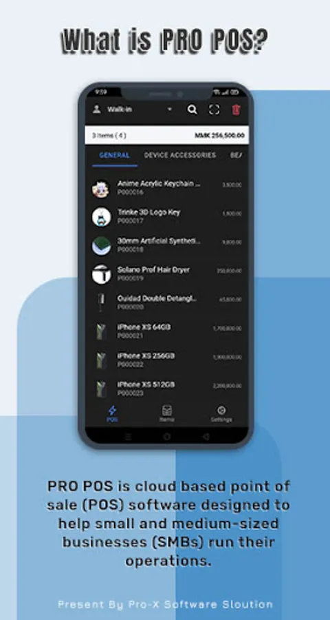 PRO POS is a point-of-sale (POS) software designed to help small and medium-sized businesses (SMBs) run their operations, from managing their customers, tracking their inventory, and generating detailed reports on sales among others. Users can run PRO POS on a desktop, smartphone, or tablet and enjoy a seamless and smooth experience and navigation on all devices.