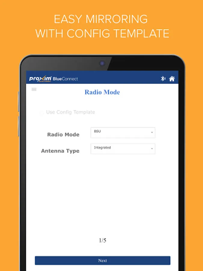 With BlueConnect app on your mobile device, you can connect to a Proxim device using passkey configured on the device and perform: