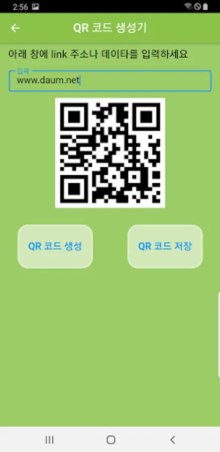 다. 'QR 생성' 을 누르면 화면에 QR 코드가 생성됩니다