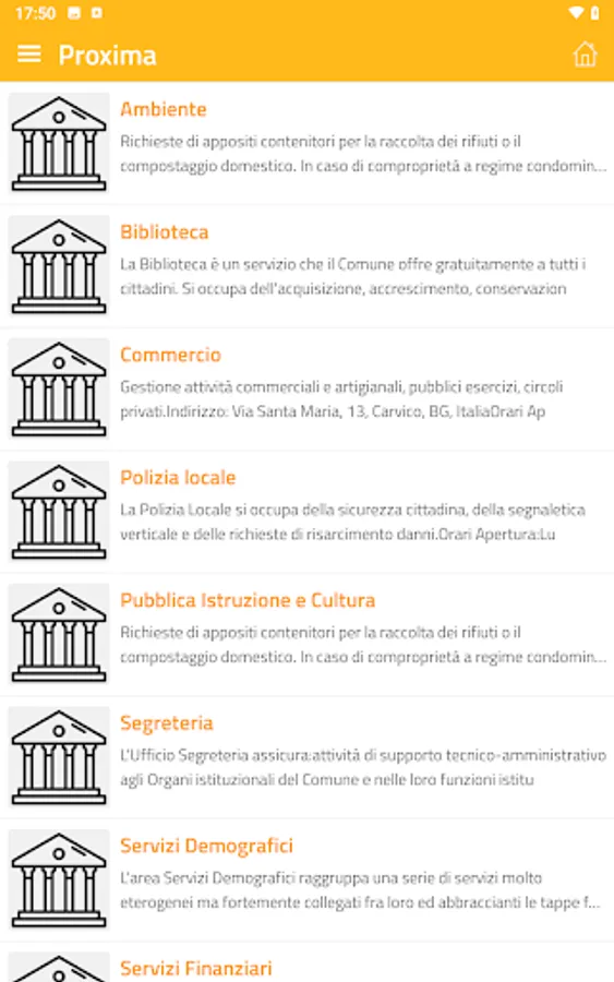 Users can view scheduled events, search for information on municipal offices or digitized services provided by the Administration.