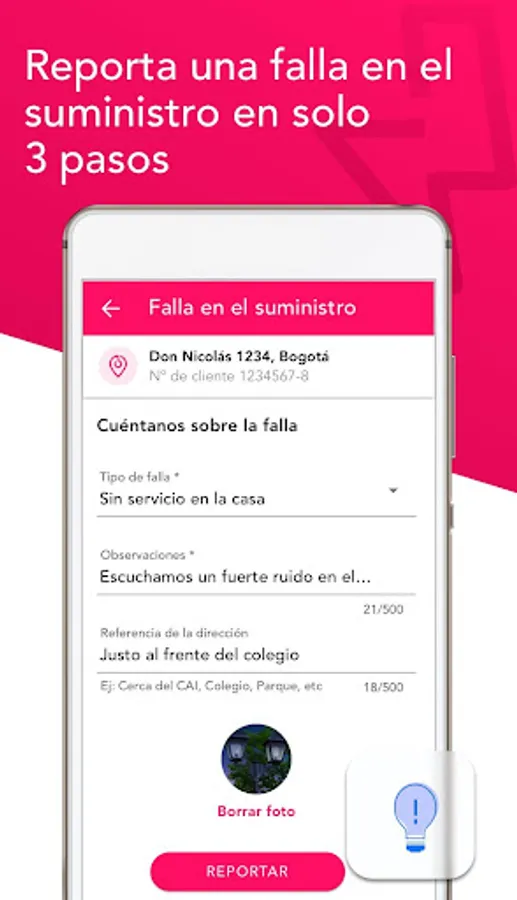 Report failures, outages or emergencies associated with the energy supply, as well as problems with the city's public lighting. Monitor the stages of failure attention.