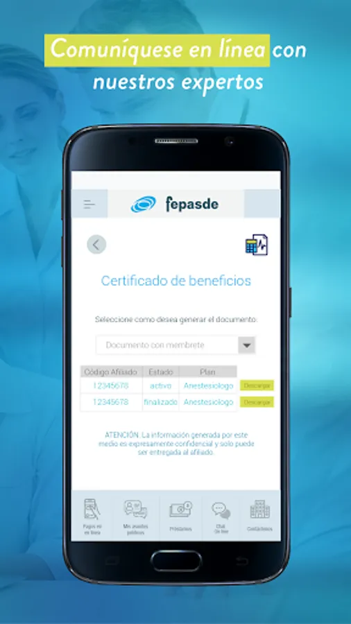 - Certificates and statements: Consult and download your Fepasde certificates and loan statements in an agile and timely manner.