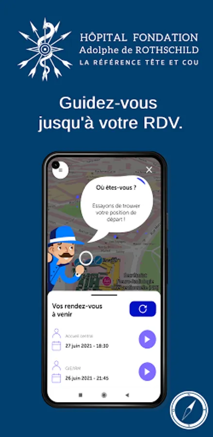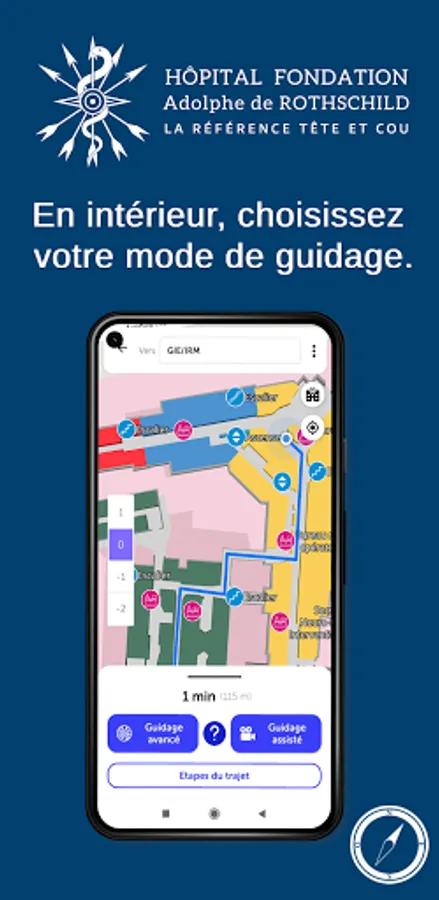 HFAR_GPS, the application of the Adolphe de Rothschild Foundation Hospital is your appointment diary but also your co-pilot within the establishment. If you don't know how to get to a service, HFAR_GPS will guide you there.