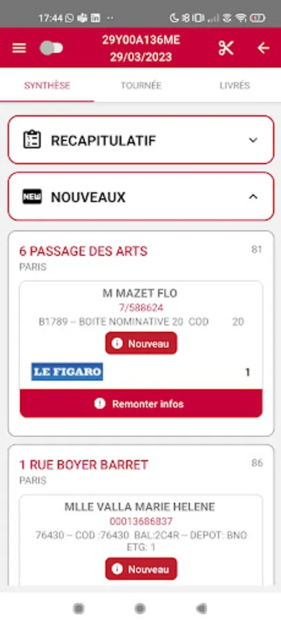 Application allowing to dematerialize the portage sheet of the PROXIMY rounds.