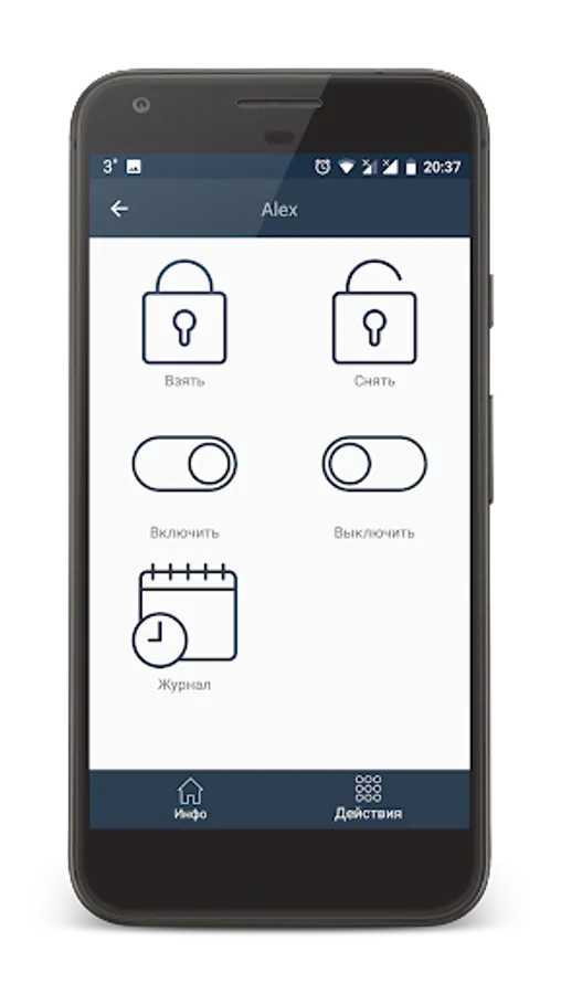 The application allows you to remotely manage the object / objects from a mobile phone.