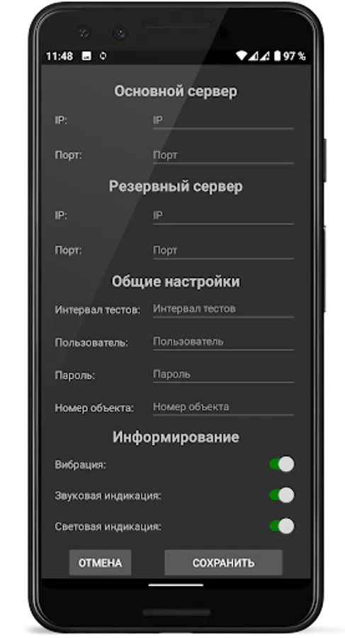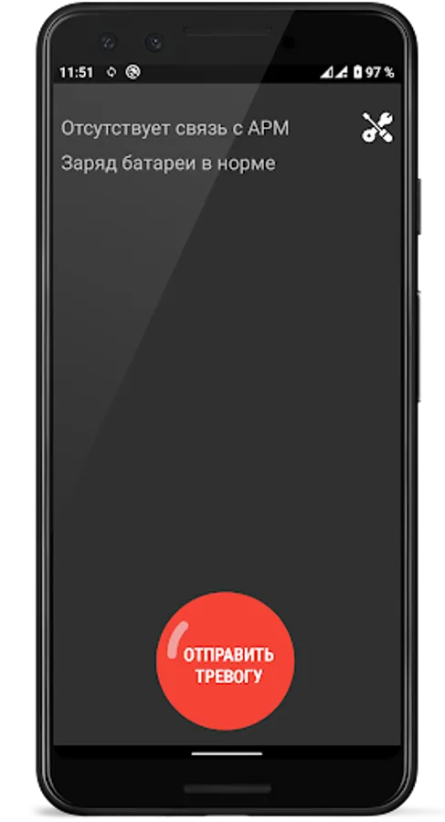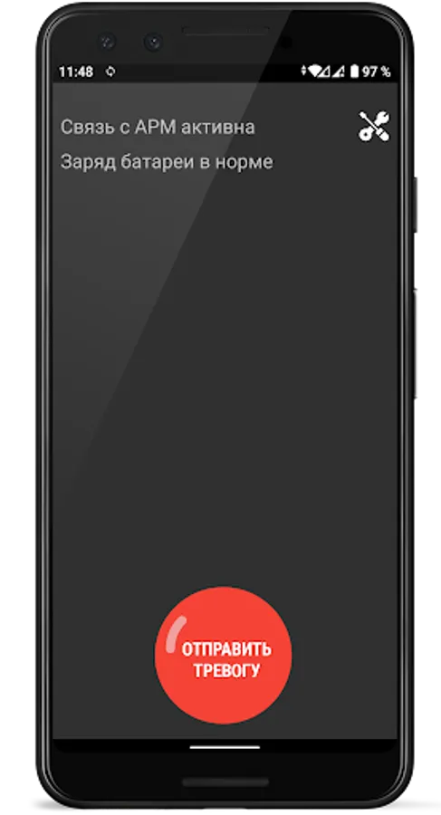 The application "KTS Proxyma" is intended for the operation of a mobile device as an alarm button with the transmission of an alarm signal to the SPI "Centaurus Proxima". Messages from the application are sent to the centralized monitoring console under the control of the software workstation "Centaur".