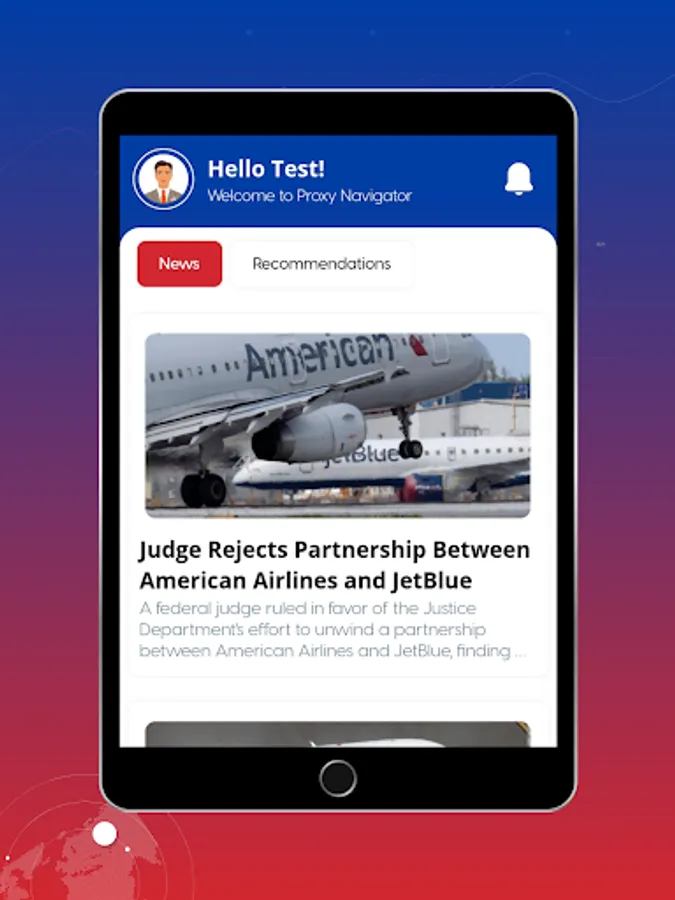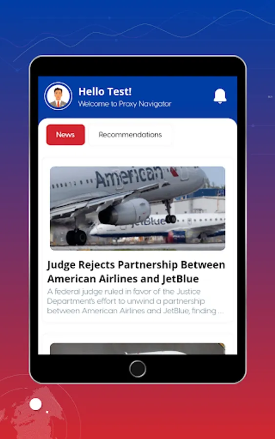 Proxy Navigator offers voting recommendations from the Free Enterprise Project (FEP) for each company that FEP covers in a living and breathing app that will receive regular updates as information evolves – making it a terrific new tool to remind users of what shareholder votes are coming up and to put our latest recommendations right in front of them, exactly when they need them. But that is not all! Proxy Navigator will also offer many features to give it year-round value to investors and market followers, including a stock ticker and news aggregator to make Proxy Navigator a one-stop app for tracking investments.