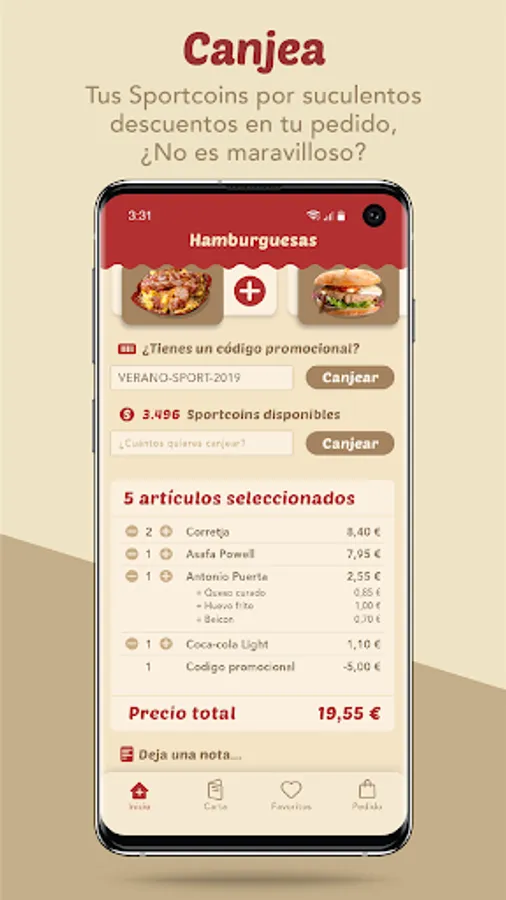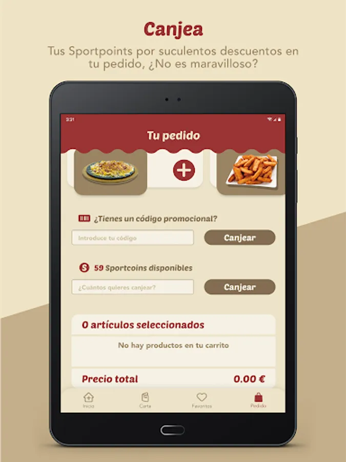 It is the most comfortable, easy and varied way to order your food at home. In addition you can benefit from our SportCoins exchangeable for food.