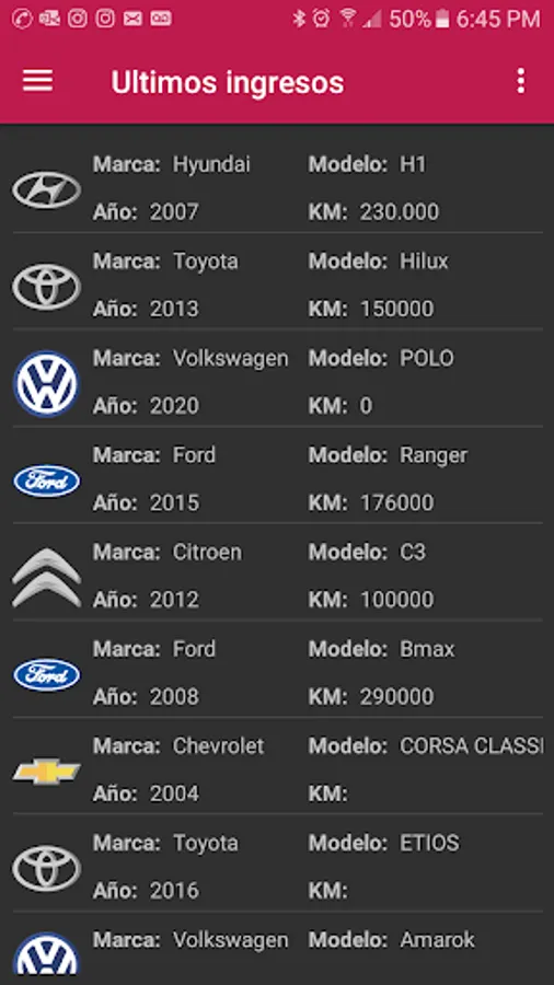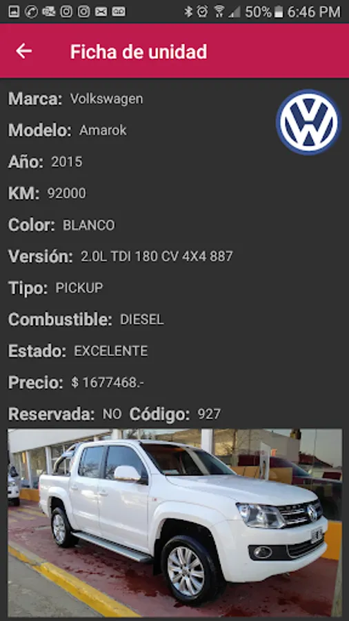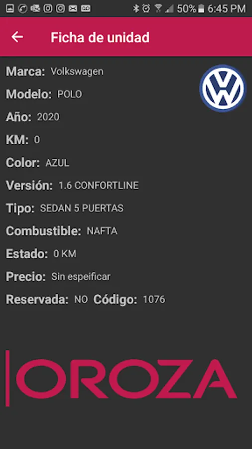 Application developed for the visualization of used units of the firm Oroza