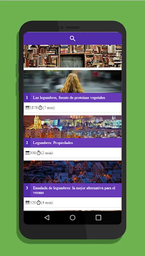 Application for didactic purposes that contains a list of articles with the search engine option.