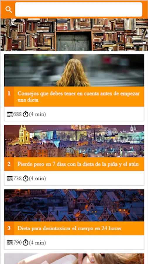 Application for didactic purposes that contains a list of articles with the search engine option.