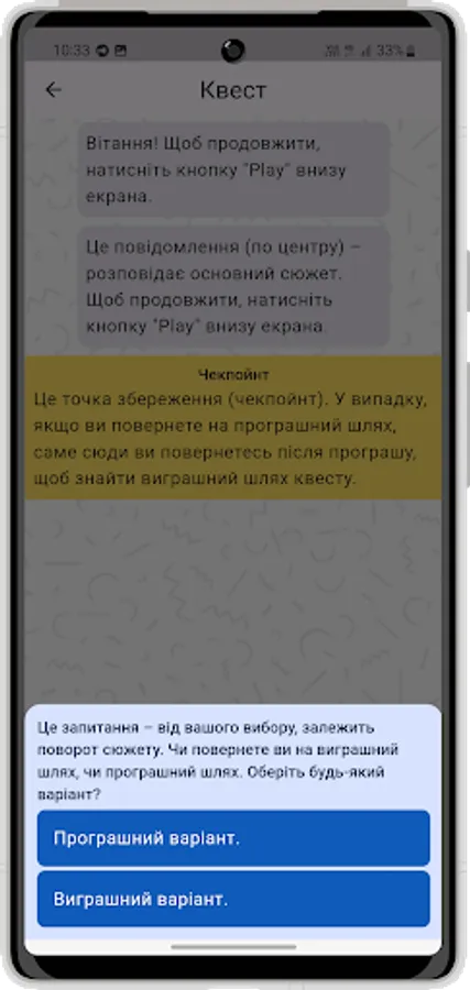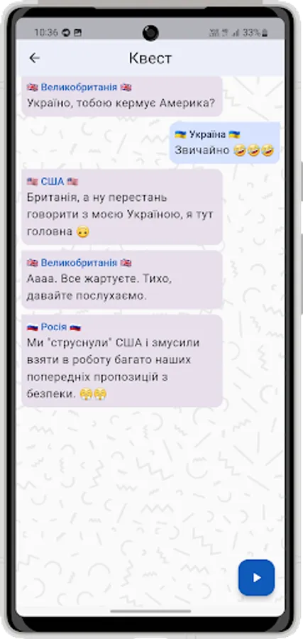 Chornobayvka Ukraine is an artistic text quest. Imagine that there is a chat where states communicate. The plot twist will depend on your decisions.